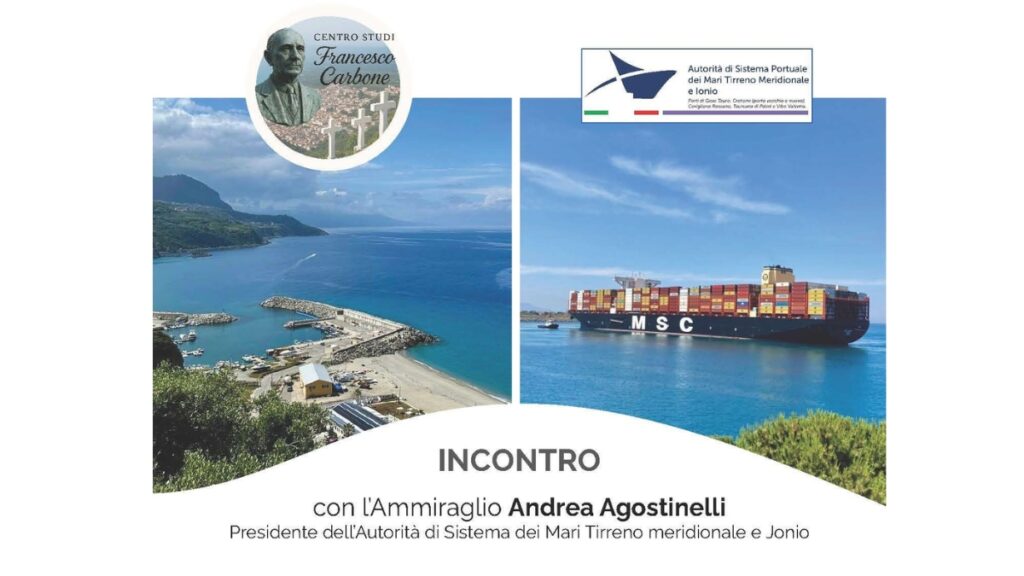 Il Centro Studi Francesco Carbone di Palmi, presieduto dal professor Antonio Carrozza, organizza per venerdì 23 maggio alle ore 19.00, presso la Società Operaia di Mutuo Soccorso di Palmi, un incontro con l’ammiraglio Andrea Agostinelli, Presidente dell’Autorità di sistema portuale dei mari Tirreno Meridionale e Ionio.