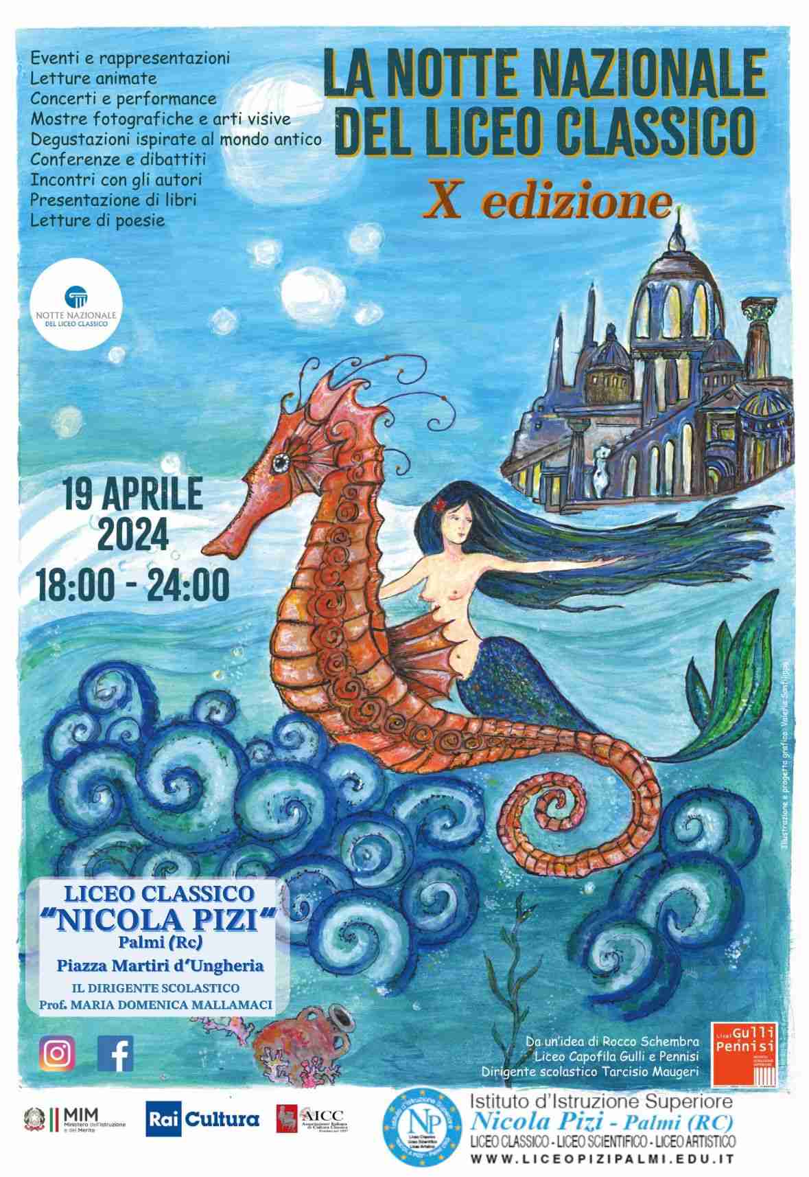 Il Liceo Classico dell’Istituto d’Istruzione Superiore “Nicola Pizi”, guidato dalla dirigente scolastica Maria Domenica Mallamaci, ha aderito anche quest’anno a “La notte nazionale del Liceo Classico”, giunta alla X edizione. L’appuntamento, in calendario venerdì 19 aprile, dalle ore 18.00 alle ore 24.00, proporrà ai visitatori uno straordinario programma di eventi.