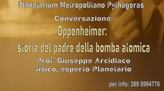 Il Planetarium Metropolitano Pythagoras, nell’ambito del protocollo di intesa con il Museo Archeologico Nazionale di Reggio Calabria, presenta una conversazione aperta al pubblico su: “Oppenheimer: storia del padre della bomba atomica”, che si terrà venerdì 23 gennaio 2026 alle ore 17:00 nella sala conferenze del Museo.