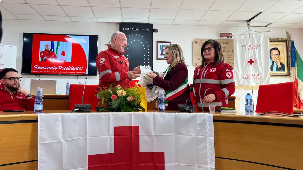 CRI Gioia Tauro, si è conclusa l’ultima tappa del Presidente Nazionale della Croce Rossa Italiana Rosario M. G. Valastro presso la Sala Consiliare A. Scopelliti del Comune di Gioia Tauro. Ad aspettarlo il Direttivo del Comitato CRI di Gioia Tauro insieme ai volontari/e, accolto dalla Sindaca   avv. Simona Scarcella,la quale ha ringraziato il presidente Valastro per la sua presenza ,e i volontari per le  attività portate avanti dal Comitato territoriale della Croce Rossa, con particolare attenzione all’impegno costante dei volontari impegnati nei servizi di assistenza, emergenza e supporto alla comunità.