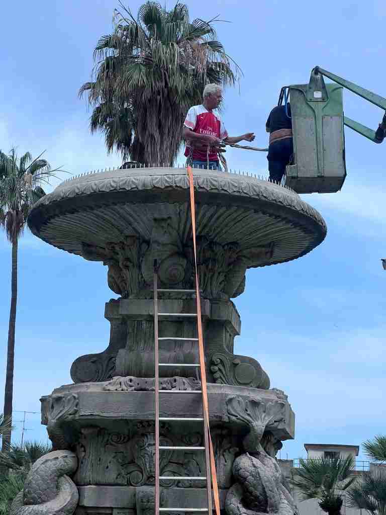 È un po’ quello che da qualche giorno succede anche a Palmi dove su iniziativa di un cittadino, Vincenzo Solano, è partita una raccolta di fondi per “curare” la fontana della Palma di piazza Amendola, uno dei monumenti simbolo della città, tanto bello quanto poco curato.