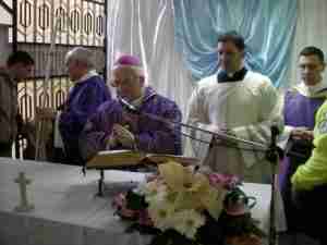 Prima dell’inizio della celebrazione ha preso la parola il cappellano dell’ospedale, don Cesare Di Leo. Il sacerdote ha ringraziato il vescovo per la sua presenza definendola una “benedizione speciale”, e ha elogiato il personale sanitario «che è altamente qualificato, nonostante la carenza di mezzi e fondi che affligge l’ospedale».