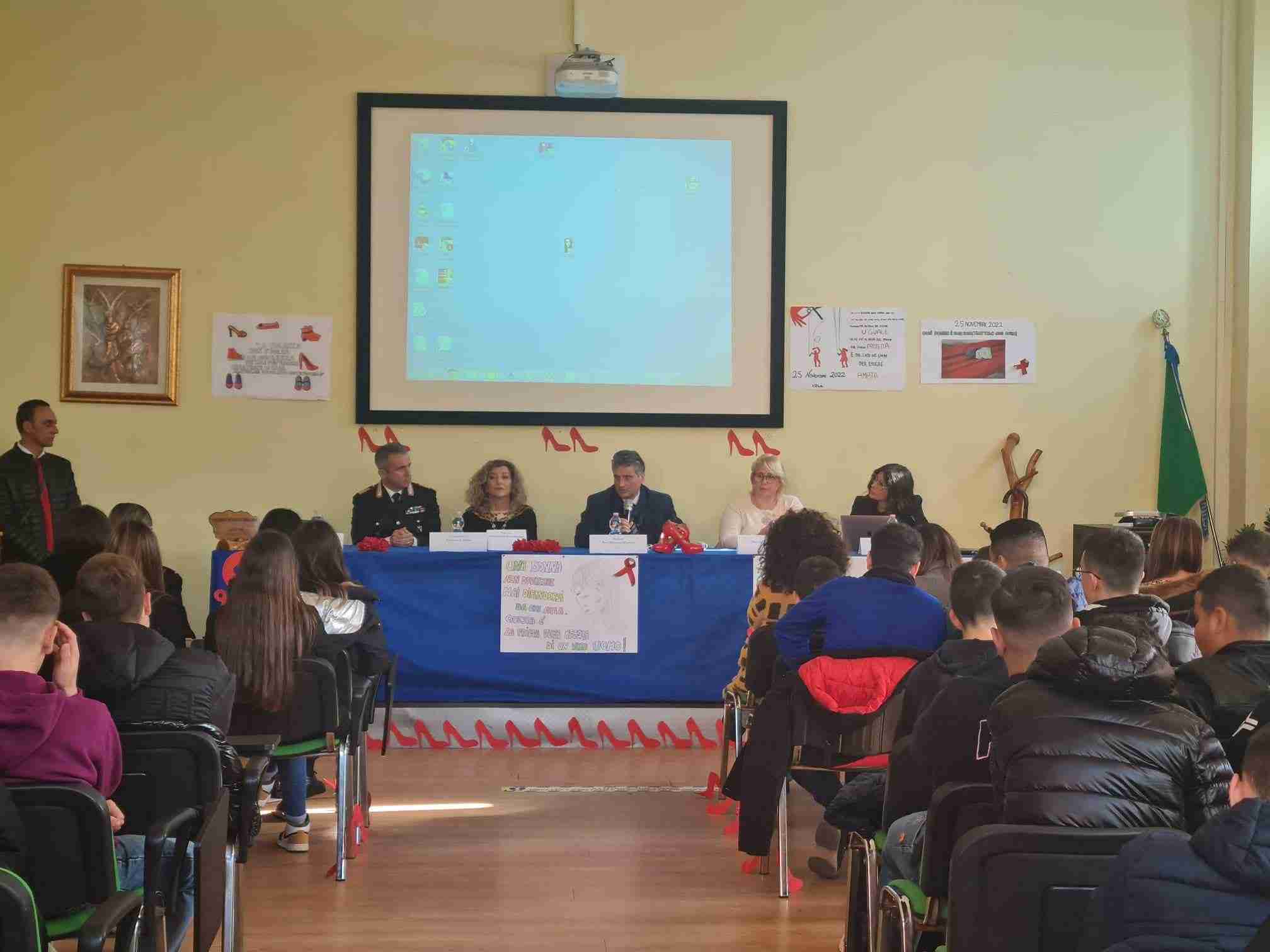 Dopo i saluti del dirigente scolastico Domenico Pirrotta, del sindaco di Palmi Giuseppe Ranuccio e dell’assessore alla Pubblica Istruzione Solidea Schipilliti, sono intervenuti i rappresentanti della locale Stazione dei Carabinieri. Il Comandante luogotenente Giovanni Calabria ha sottolineato che l’Arma con il suo quotidiano agire offre sostegno a tutte le donne che vivono momenti di difficoltà, ribadendo che il primo passo per tornare libere dalle violenze è quello di denunciare; il maresciallo Bianca Marino ha evidenziato come la violenza di genere sia ormai un fenomeno socioculturale diffuso da combattere strenuamente affinché non diventi la normalità; il maresciallo Martina Piconeri ha sollecitato le donne vittime di violenza a denunciare senza avere paura e a nutrire fiducia nei confronti delle Forze dell’Ordine perché per l’Arma l’approccio alla vittima è centrale, così come è sempre più importante il lavoro che si fa in collaborazione con i centri antiviolenza.