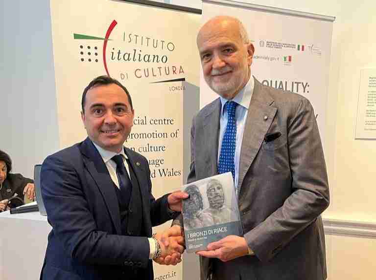 Il consigliere metropolitano delegato, Domenico Mantegna, ha incontrato Inigo Lambertini, ambasciatore d’Italia a Londra, stringendo rapporti di reciproca collaborazione e consegnandogli un volume dedicato ai Bronzi di Riace. L’occasione è stata resa possibile dall’invito ricevuto dalla Città Metropolitana per prendere parte al convegno “Food quality: a successful italian strategy”, presso l’Italian Institute of Culture a Belgrave square, nella capitale britannica. Nel corso dell’iniziativa, il consigliere Mantegna si è soffermato anche con Katia Pizzi, direttore dell’Istituto di cultura italiana, con Giovanni Sacchi, direttore dell’ufficio londinese per l’Italian trade agency, con Mauro Rosati, direttore di Origin Italy and Fondazione Qualivita, e con Felice Assenza, Capo dipartimento dell’Ispettorato centrale della tutela della qualità e repressione frodi dei prodotti agroalimentari del Ministero dell’Agricoltura.