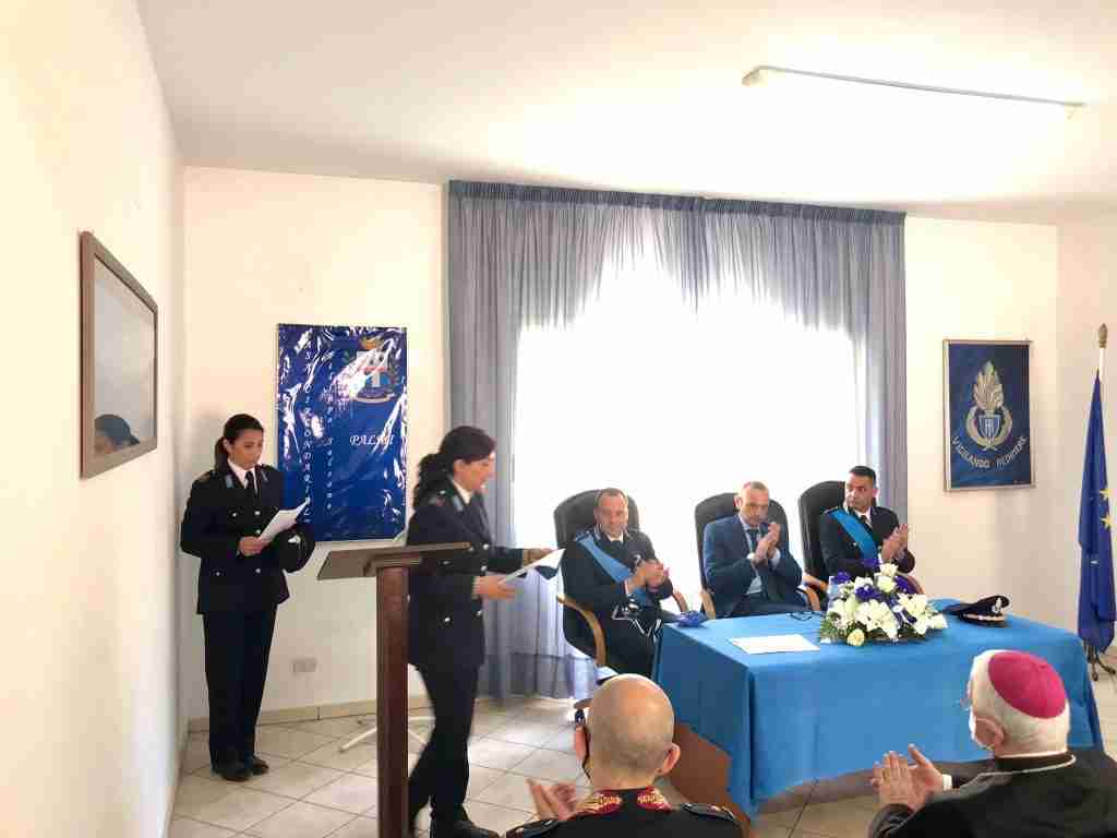 Al termine della lettura dei messaggi, la speaker della cerimonia, Assistente Capo Coordinatore Triestina Buccafusca ha introdotto l’intervento del Comandante Paino sull’attività operativa del Reparto di Polizia Penitenziaria. Paino ha sottolineato che la gestione del virus e le relative implicazioni in tema carcerario hanno totalmente condizionato il lavoro del Reparto di Polizia Penitenziaria della Casa Circondariale di Palmi, da un lato attraverso l’applicazione di regole e protocolli al fine di evitare che il virus entrasse in istituto e dall’altro attraverso l’impegno per prevenire rivolte e proteste da parte della popolazione detenuta, che in quest’ultimo anno è notevolmente aumentata, passando da 50 a 150 detenuti.