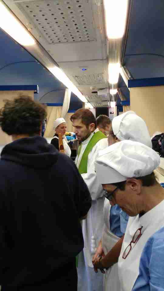 “Sul treno eravamo tutti tranquilli- racconta Ippolito Angilletta, barelliere sul treno bianco da 12 anni- viaggiamo per tante ore e abbiamo quindi con noi cibo, acqua, una cucina e anche un farmacia. Abbiamo mantenuto la calma, anche quando ci hanno detto che non si sapeva ancora quanto c’era da aspettare prima della ripartenza”.