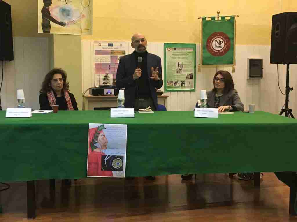 La parola, quindi, è passata proprio ai ragazzi i quali, visibilmente emozionati per l’incontro, hanno condiviso il percorso intrapreso nei mesi precedenti che li ha condotti – attraverso la lettura di alcuni brani del De vulgari eloquentia di Dante Alighieri e del saggio “La lingua dell’Altro” di Francesco Idotta- ad una riflessione attenta sulla complessità del fenomeno della convivenza pacifica nel proprio territorio le cui origini sono riscontrabili nell’articolato tessuto linguistico che sottende alla lingua italiana. In particolare il saggio di Idotta si sofferma sulla riscoperta del patrimonio culturale che i dialettofoni hanno da offrire, quando questo non divenga motivo di isolamento/spaesamento all’incontro, tra i banchi di scuola, con l’italiano una lingua che più che madre si rivela matrigna e non in grado di esprimere a pieno la complessità e ricchezza del sentire emotivo del dialettofono. Da qui, come afferma con grande chiarezza l’autore, la necessità di una scuola che riveda la didattica tradizionale e standardizzata dell’insegnamento dell’italiano applicando ad essa le metodologie utilizzate per l’apprendimento della seconda lingua.