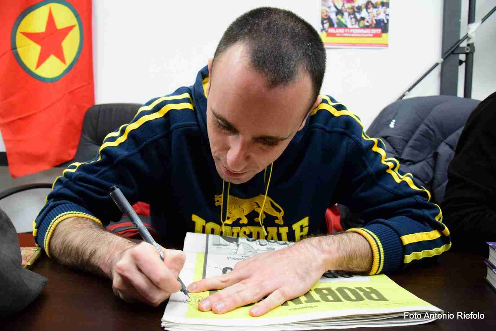 Stimolato dalle domande di Giovanni Maiolo, Michele Rech (il nome di Zerocalcare) ha raccontato curiosità e aneddoti sui suoi fumetti e ha spiegato come è nato il viaggio raccontato in Kobane Calling.