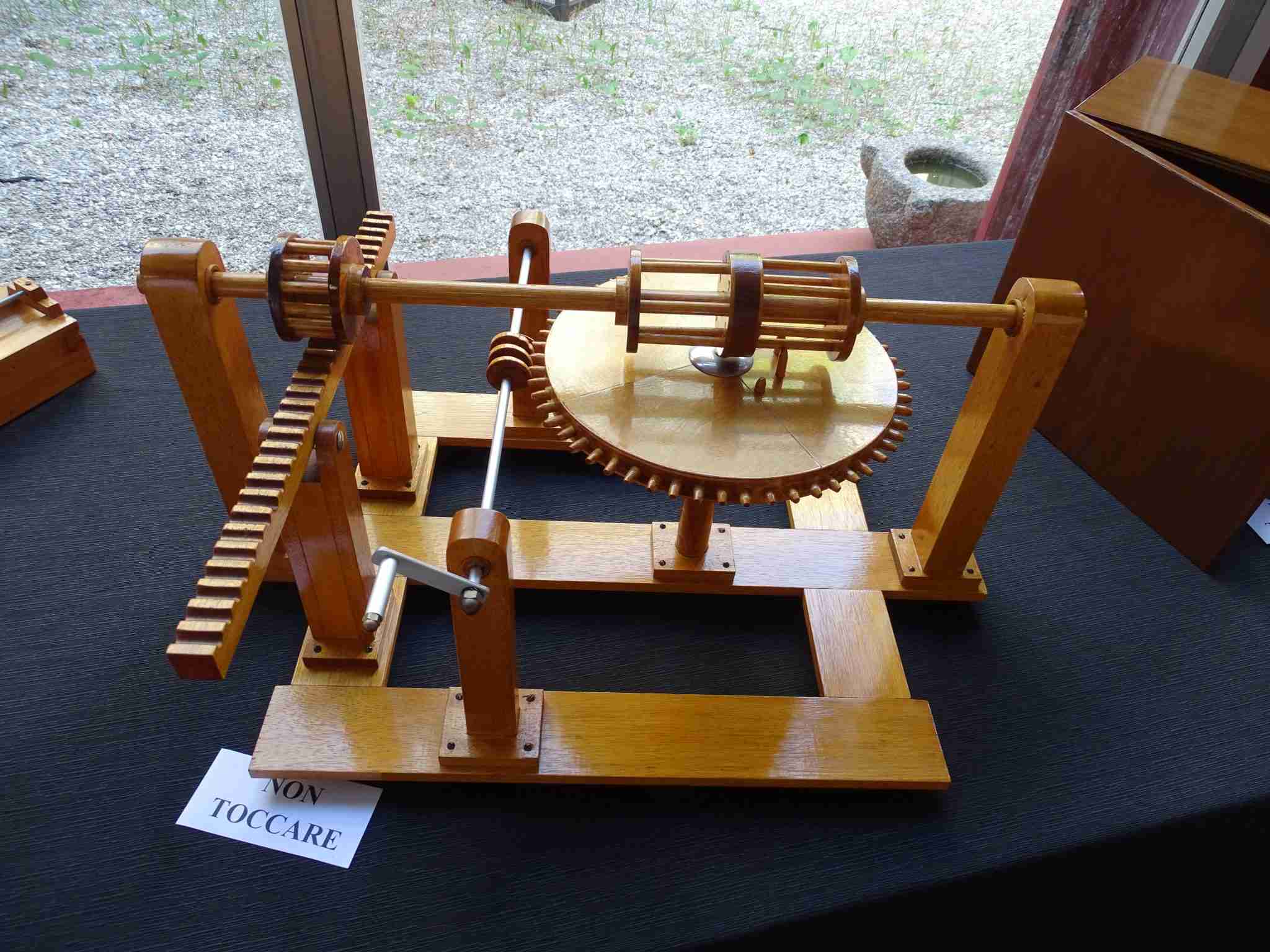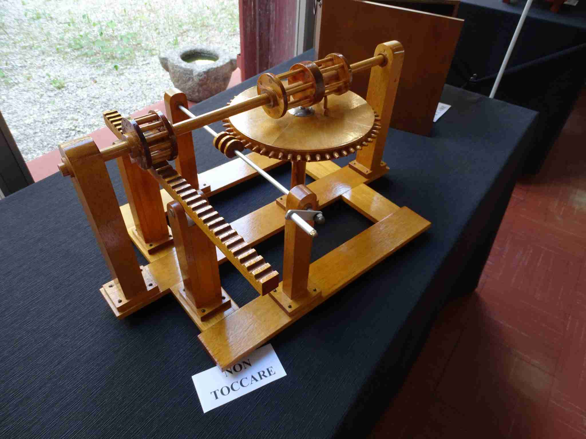 L’esposizione è composta da 10 tavole che illustrano le zone in cui sono stati realizzati i primi interventi di costruzione delle condotte idriche ed elettriche, e da 7 modelli in legno di macchine pre–leonardiane e quelle del Codice di Leonardo da Vinci, realizzate a mano dal decoratore taurianovese Francesco Del Grande.