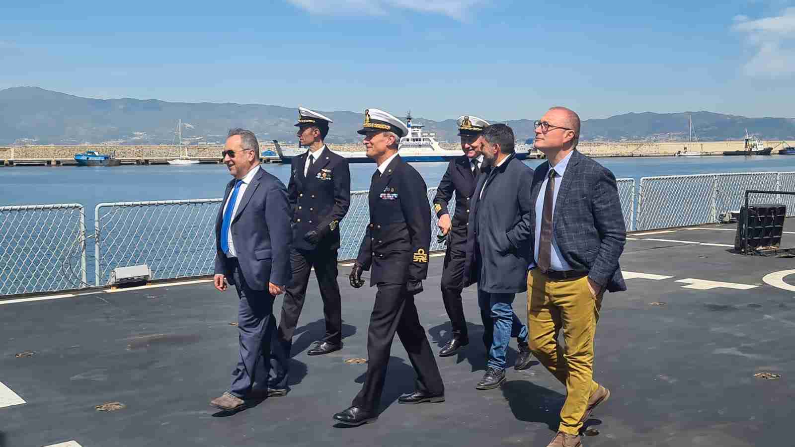 «Un grande onore per noi poter accogliere un’unità navale così prestigiosa – hanno affermato – simbolo dell’impegno della Marina Militare Italiana nelle acque del Mediterraneo ed in tutto il mondo, per la sicurezza e la pace tra i popoli. Un omaggio doveroso da parte nostra all’attività di tanti uomini e donne, in questa occasione rappresentati dal Contrammiraglio Frumento e dal Comandante Fancellu, che sono al servizio della sicurezza nazionale, anche in un momento delicato come quello che l’Europa ed il mondo intero stanno attraversando».
