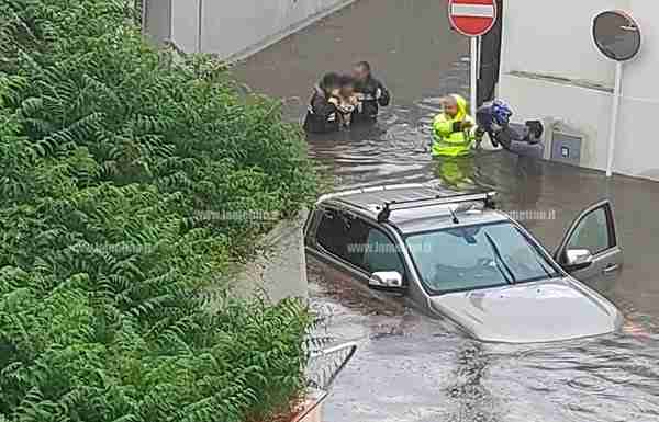 Auto intrappolate in un sottopasso ferroviario e quattro persone salvate dai Vigili del fuoco e dal gruppo volontari della Protezione civile che le hanno estratte dalle auto e messe in salvo.