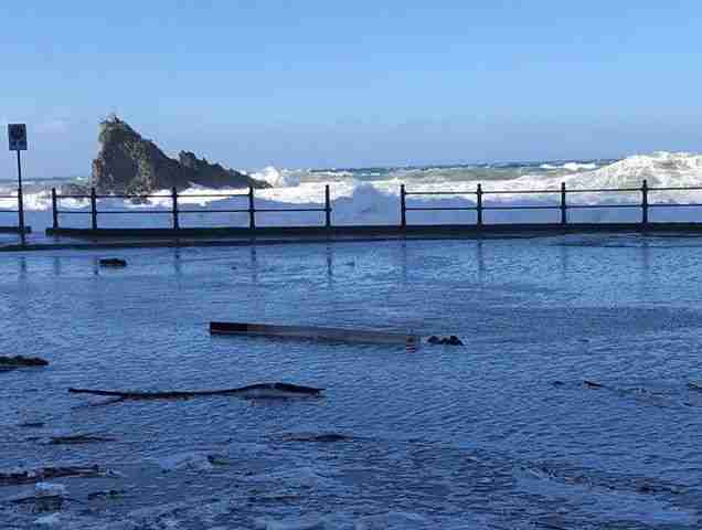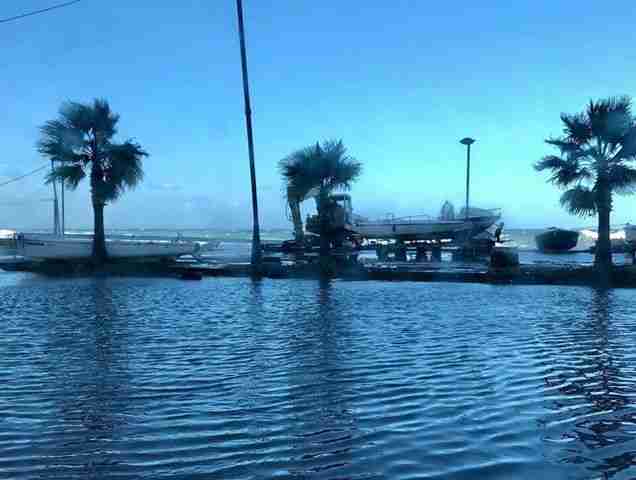 Sulle strade sono adesso visibili i segni della mareggiata: il lungomare è allagato ed il fango ed i detriti ricoprono la strada.