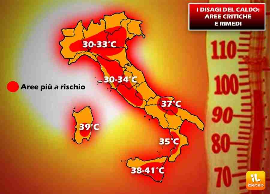Su Puglia, Sicilia e Sardegna sono previsti picchi massimi fin verso i 45-48°C.