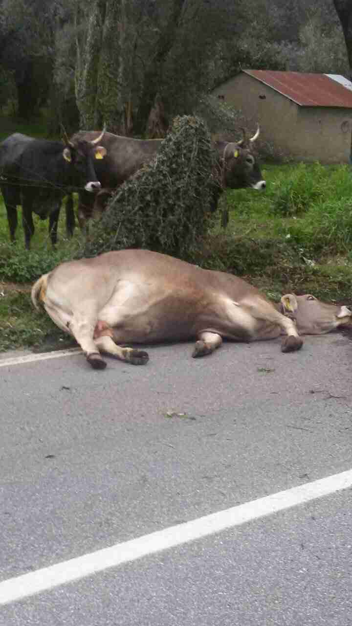 Mucca in strada causa un incidente