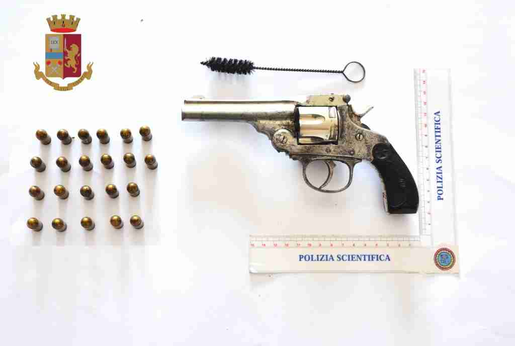 I poliziotti durante una perquisizione hanno trovato nel garage dell’attività commerciale dei tre arrestati una pistola revolver, priva di matricola, e 22 cartucce calibro 380 di notevole potenziale offensivo.
