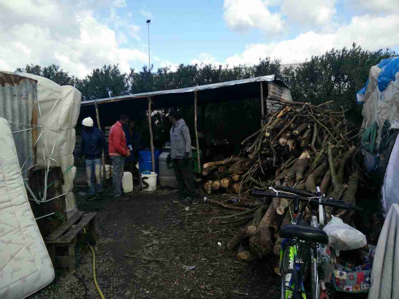 Ancora più precarie del loro lavoro, sono le condizioni in cui sono costretti a vivere. Molti di loro dormono su un materasso o direttamente sul pavimento di una tenda. I bagni dei quali usufruiscono sono latrine scavate nella terra. In tutto il campo ci sono cinque locali adibiti a servizi igienici, in ognuno di essi sono presenti due docce. Dieci docce, quindi, per soddisfare le esigenze igieniche quotidiane di oltre duemila persone. Solitamente, allora, ci si lava con acqua riscaldata in bidoni di lamiera così come si cucina su fuochi improvvisati o con fornelli a gas in tende e baracche. Superfluo aggiungere che non esiste un servizio di pulizia dell’area o, più banalmente, di raccolta dei rifiuti. Con quello che ne consegue in termini di rischio per la salute.