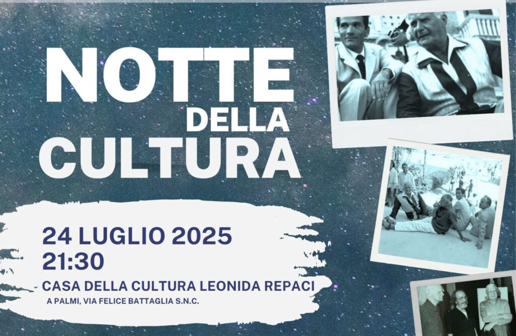 Stasera alle ore 21:30, la Casa della Cultura “Leonida Repaci” di Palmi si trasforma in palcoscenico d’eccellenza per la Notte della Cultura, un evento pensato per dare voce all’anima profonda del territorio. Un percorso immersivo tra le forme espressive della memoria, che abbraccia cinema, musica, arte, letteratura e sapori autentici.