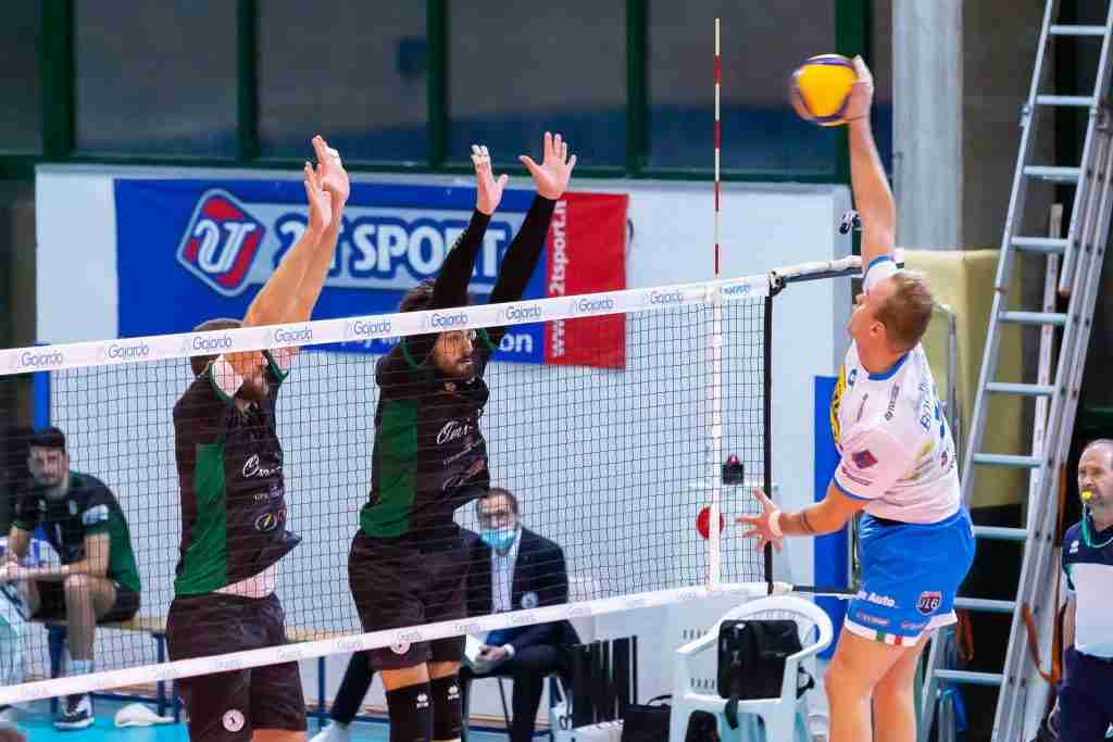 Nel primo set si va avanti in una situazione di equilibrio assoluto. Sul 17-16 Polimeni chiede un challenge che gli da ragione e Palmi ritrova così la parità. Sul 21-21 Tuscania riesce ad allungare grazie a due muri importanti portandosi sul 24-21. Palmi prova a rispondere ma Boswinkel chiude il conto sul 25-22.