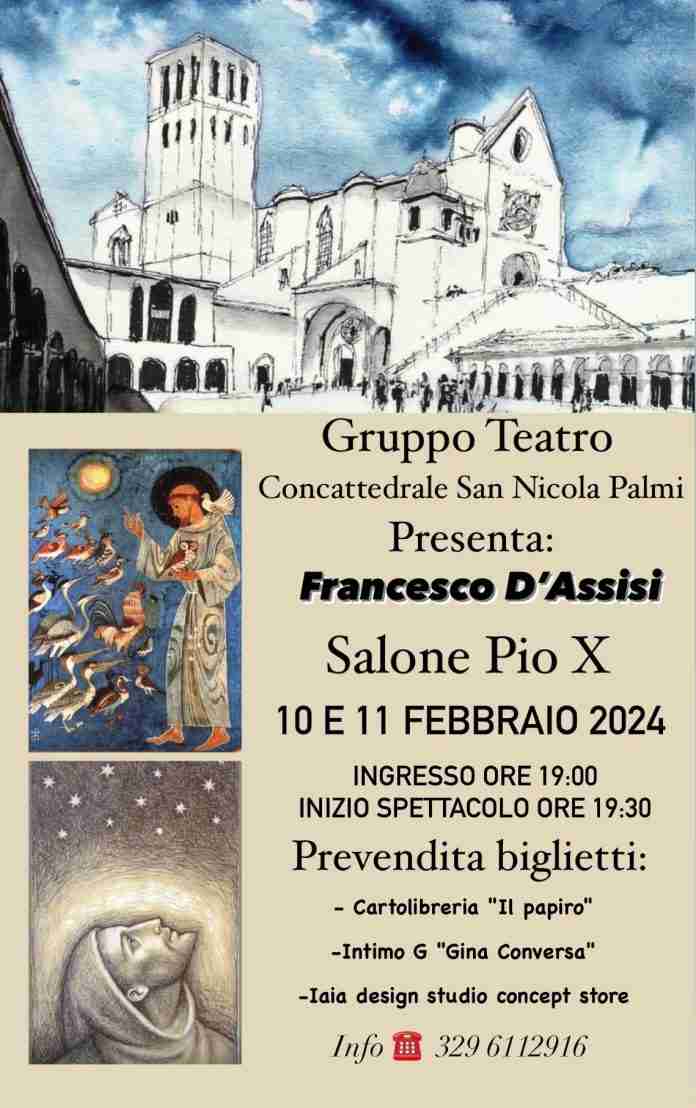 Sabato 10 e domenica 11 febbraio 2023 il “Gruppo Teatro” creato dai giovani della Concattedrale San Nicola – guidata dal Parroco Don Domenico Loiacono – regalerà al pubblico di Palmi, col patrocinio della Curia Vescovile l’emozionante storia di San Francesco D’Assisi e del suo amore verso la povertà, il Vangelo e i poveri.