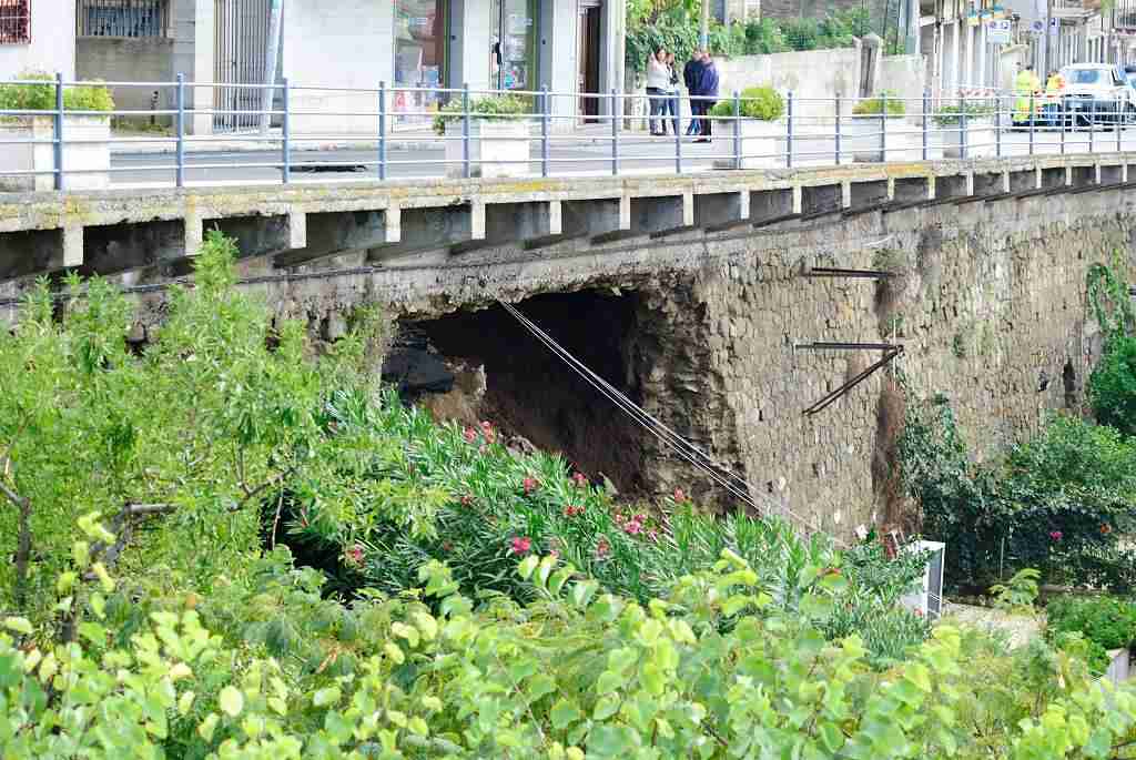 Intorno alle 11e30, sotto via Bruno Buozzi, all’altezza del belvedere “Gi.Sa”, una delle volta che sorregge la strada ha ceduto, aprendosi e creando lentamente una voragine.