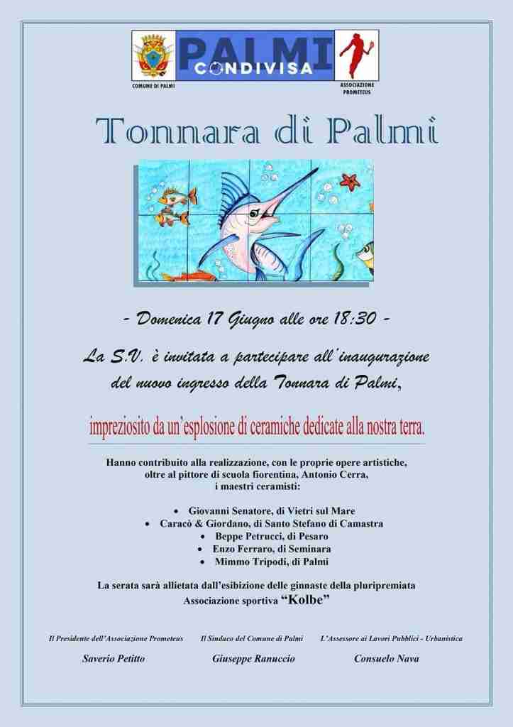 L’appuntamento per l’inaugurazione del nuovo ingresso della Tonnara di Palmi è per Domenica 17 giugno alle ore 18.30 quando si potranno ammirare le opere d’arte di maestri ceramisti che hanno contribuito, con i loro preziosi lavori, a rendere unico un punto importante della città di Palmi.