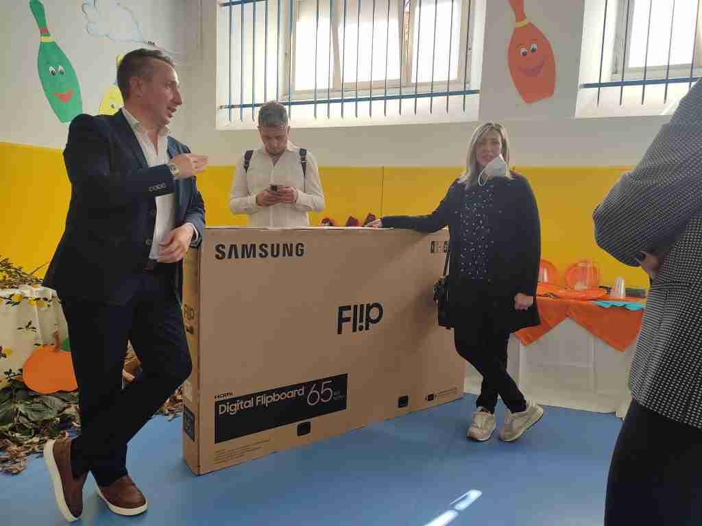 È stata consegnata ieri, 17 ottobre, alle insegnanti e ai piccoli alunni della Scuola dell’Infanzia “Rocco De Zerbi” di Palmi, la lavagna interattiva multimediale donata dal Dipartimento FDI “Lavoro e Crisi Aziendale” per la provincia di Reggio Calabria e da alcuni imprenditori palmesi.