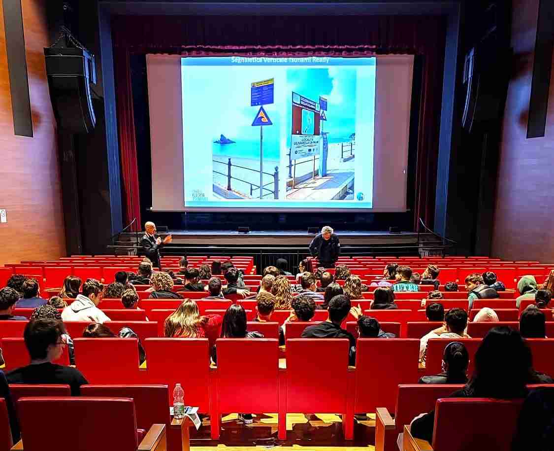 Durante l’incontro è stato fatto un resoconto sullo stato di avanzamento delle attività previste dai 12 indicatori che valgono la certificazione di Comune Tsunami Ready. Tra queste attività vi sono tre interventi annuali di  formazione e accrescimento della consapevolezza al pubblico. Il giorno seguente, presso la sala  principale del rinnovato teatro Manfroce di Palmi, con la collaborazione dell’Istituto d’Istruzione  Superiore “N.Pizi” diretto dalla Preside Mallamaci, si è tenuto un incontro che visto circa 150 studenti dell’Istituto ascoltare con attenzione una lezione interattiva supportata da video didattici sul fenomeno degli tsunami tenuta dai ricercatori Ing.Alessandro Amato, dal Dott.Lorenzo Cugliari e dalla Dott.ssa Concetta Nostro dell’Istituto Nazionale di Geofisica e Vulcanologia di Roma.