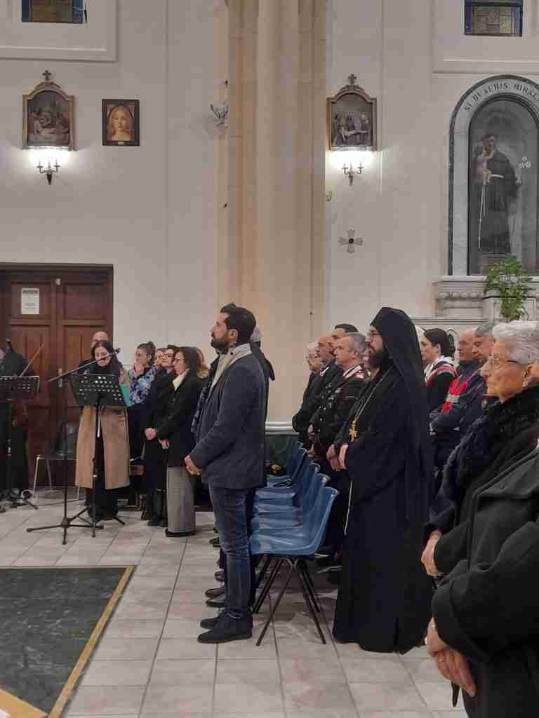 Presenti numerosi fratelli conventuali di Padre Giorgio, tanti sacerdoti della città di Palmi e della Diocesi, padre Benedetto Colucci, rettore del monastero ortodosso dei Santi Elia e Filarete a Seminara. Tra le autorità, il sindaco di Palmi Giuseppe Ranuccio; il Comandante provinciale dei Carabinieri di Reggio Calabria il Generale Cesario Totaro, il Generale dei Carabinieri Raffaele Fedocci, il colonnello Gianluca Migliozzi, Comandante del Nucleo Operativo di Gioia Tauro, l’Associazione nazionale Carabinieri Sez. di Palmi, presieduta da Giovanni Grillea.