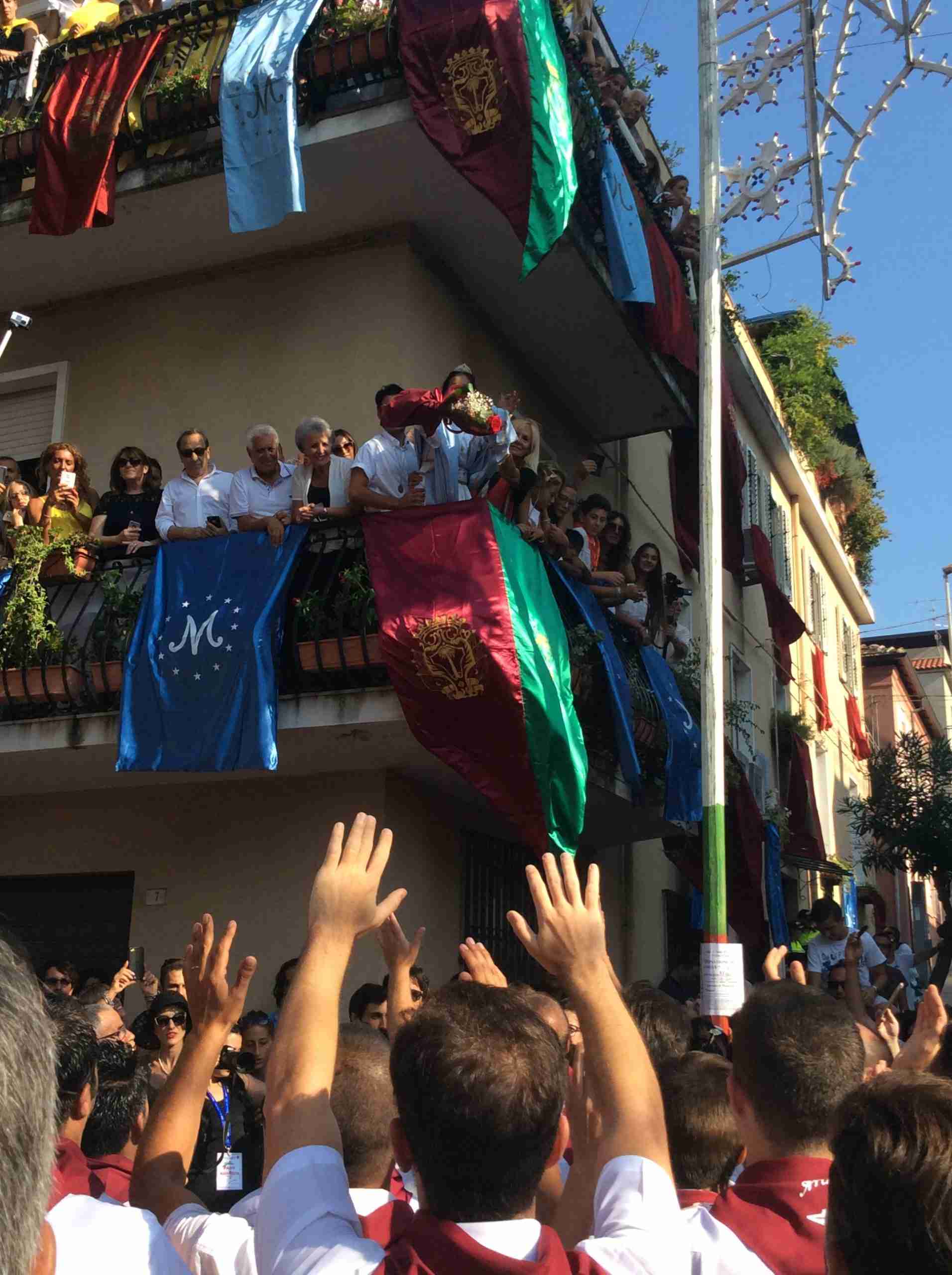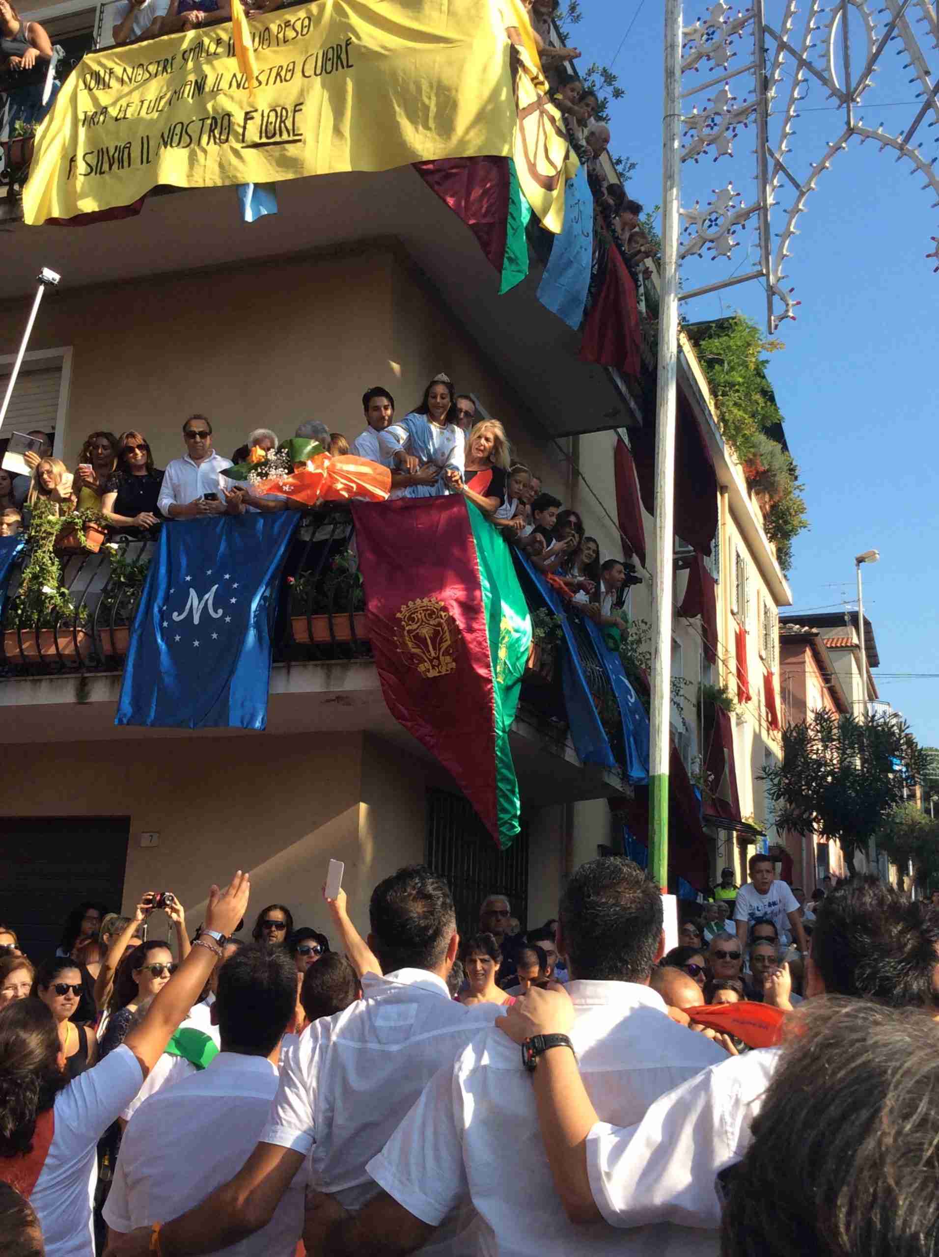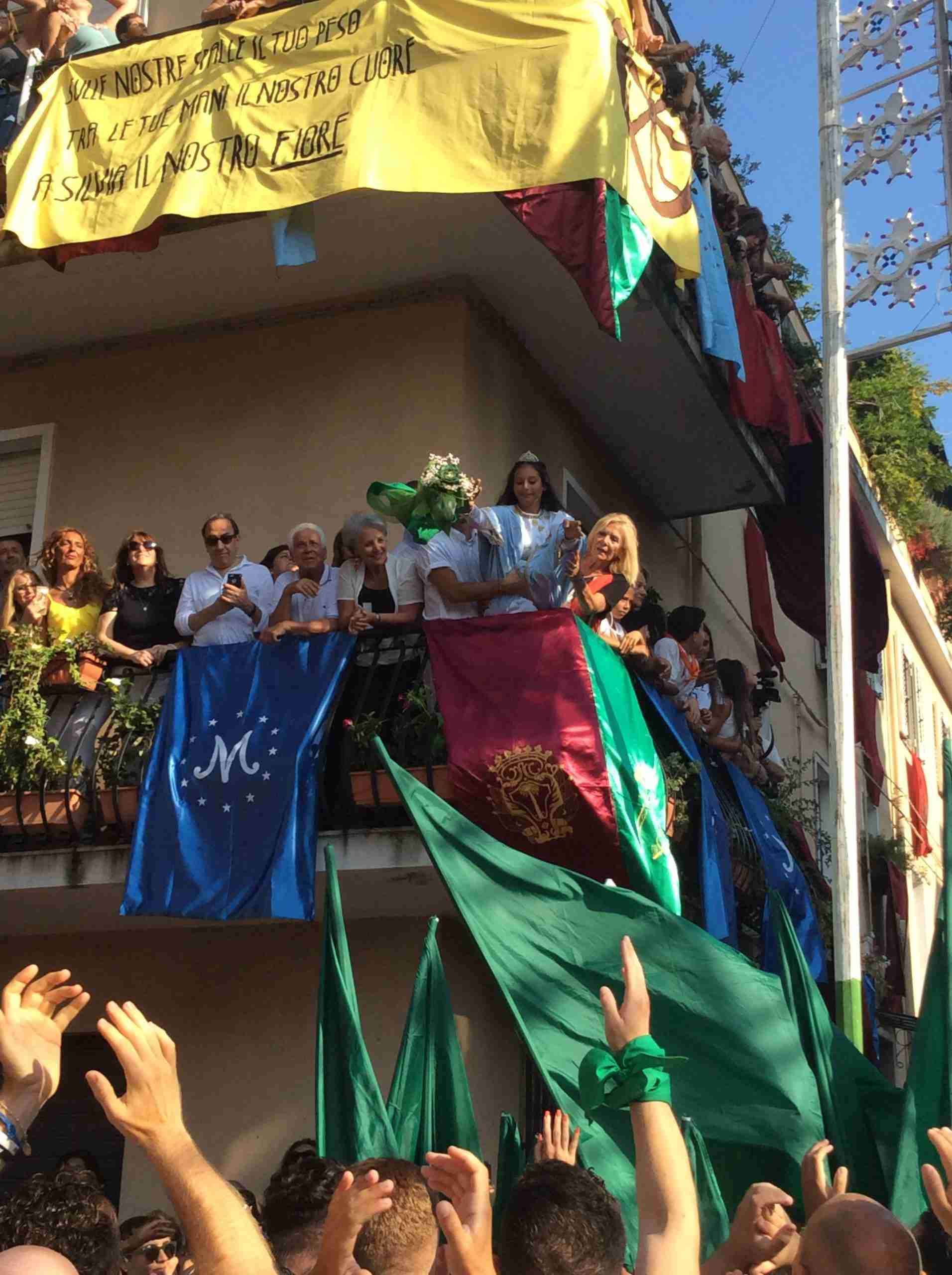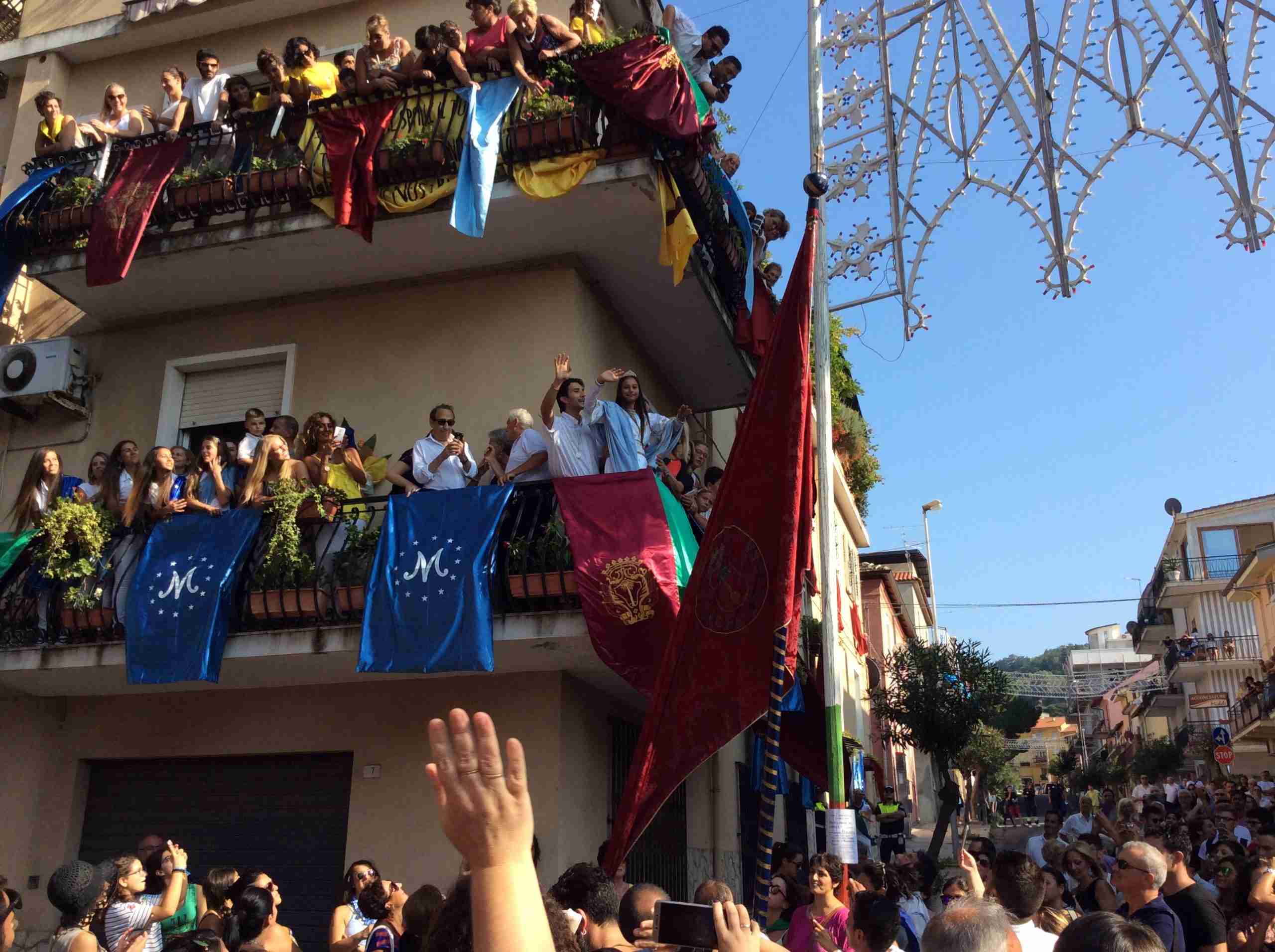 Un lungo corteo, dalle 16, animato dagli ‘mbuttaturi delle cinque corporazioni cittadine (Artigiani, Bovari, Carrettieri, Contadini e Marinai), ha percorso le strade della città ed ha salutato Silvia, l’Animella della Varia del 2016 che dal balcone di casa Tigano ha gettato cinque rose colorate: blu ai Marinai, amaranto agli Artigiani, gialla ai Carrettieri, arancio ai Bovari e verde ai Contadini.