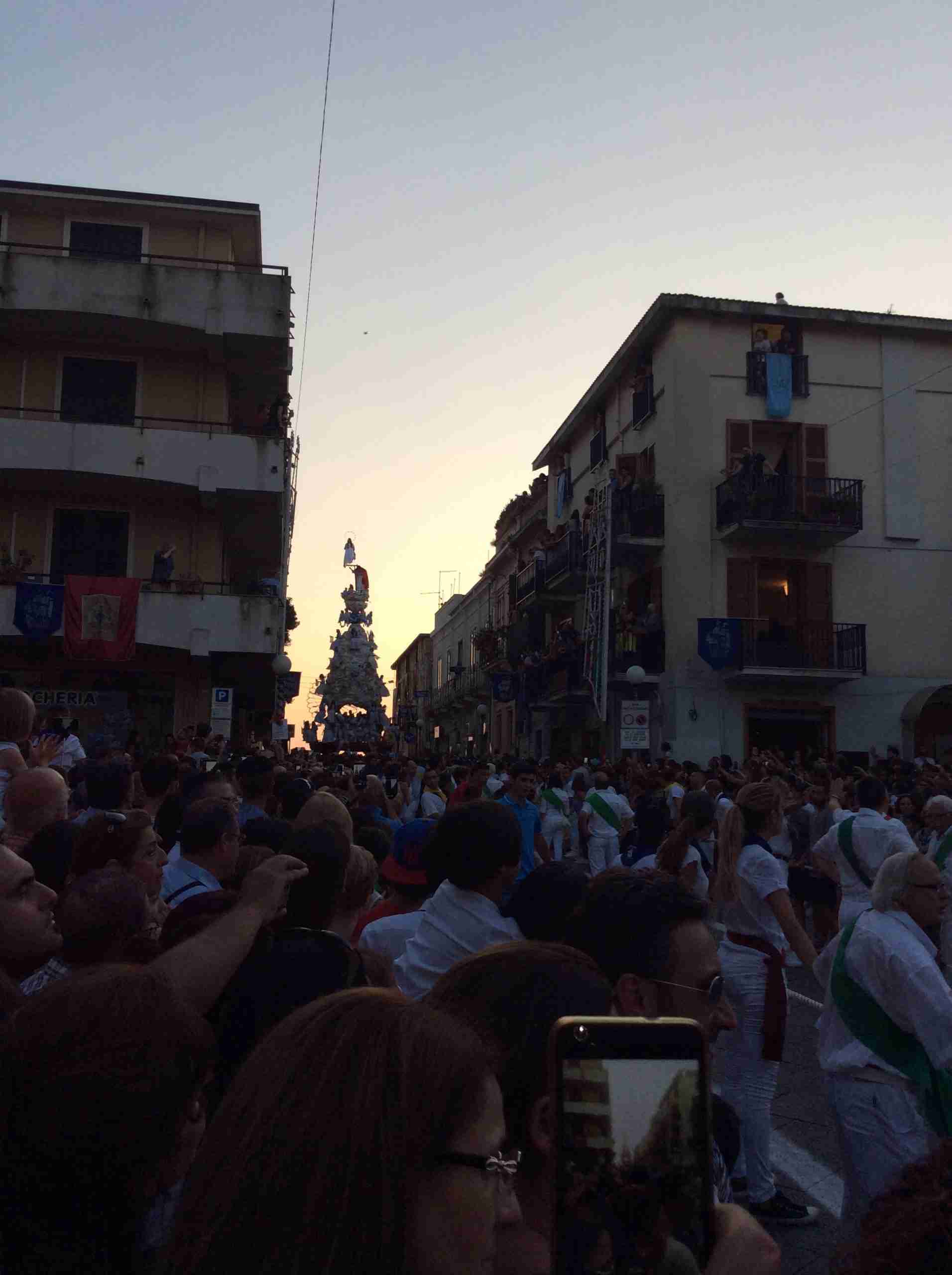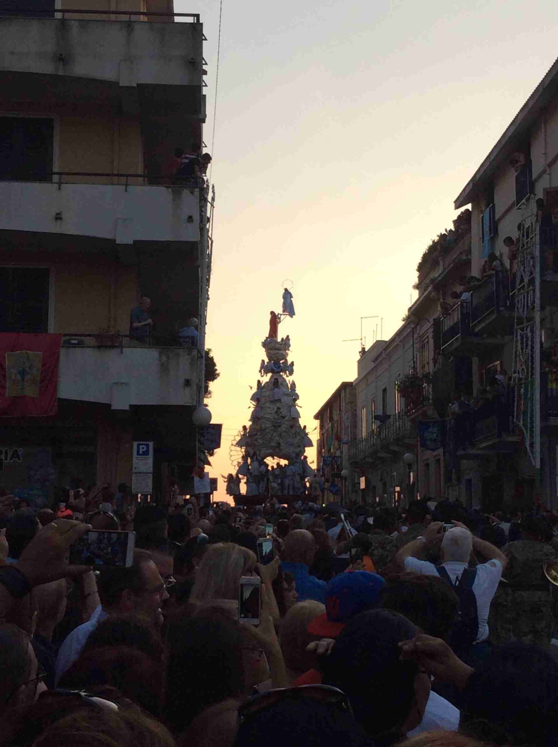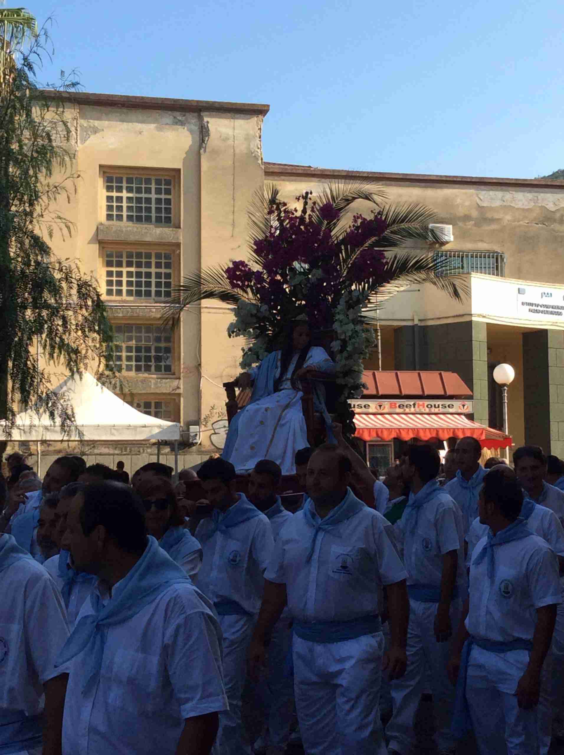 Il Padreterno, Giuseppe Ciappina, l’ha accolta all’uscita di casa ed accompagnata sulla portantina; il corteo ha raggiunto il sagrato della chiesa Matrice per la benedizione, ha percorso la via Roma ed il corso Garibaldi per terminare ai piedi della Varia.