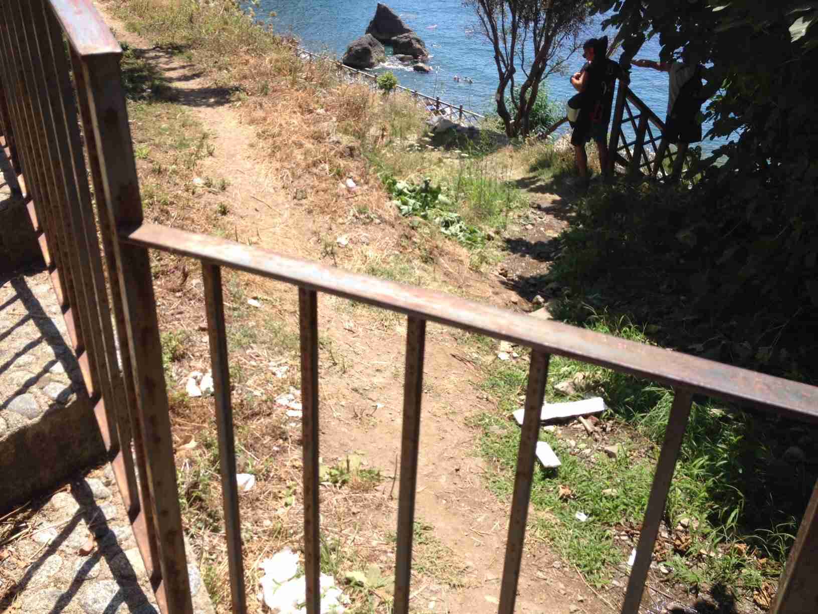La prima rampa di scale che si incontra arrivando alla Marinella è sommersa dalle erbacce e da ogni tipo di rifiuto, per non parlare della strada sterrata che conduce in spiaggia, sommersa da piante selvatiche alte e fastidiose. Un albero di fichi, poi, rende difficoltoso il passaggio dei bagnanti.