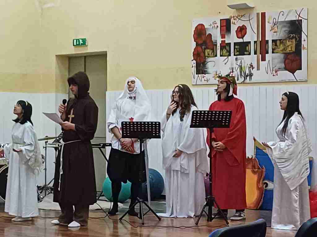 Suggestivo il programma portato in scena dagli allievi del Pizi: le tre cantiche della Divina Commedia sono state ripercorse in un intenso viaggio di parole, musica e danza che ha fatto rivivere alcuni dei momenti poetici più celebri dell’opera dantesca (dal I canto dell’Inferno alla Preghiera alla Vergine del XXXIII del Paradiso). Le classi di tutti gli indirizzi dell’Istituto, guidate dai propri docenti, hanno prodotto letture drammatizzate, creazioni artistiche, esibizioni musicali e coreografiche, guidando il pubblico attraverso la creatività del genio dantesco.