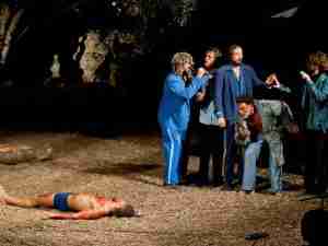 I danzatori divenuti attori hanno ballato tra gli uliveti secolari, i loro corpi sono rimasti al centro della scena a cui si sono aggiunti manifestazioni della voce tra parole, risate, grida, pianti e battute. Tutto questo ha contribuito a rendere la scena significativa, semplice ed essenziale a tratti incomprensibili e perfino comica. In una sola parola, il teatro del corpo, espressione di sogni, sofferenze, suoni e odori.