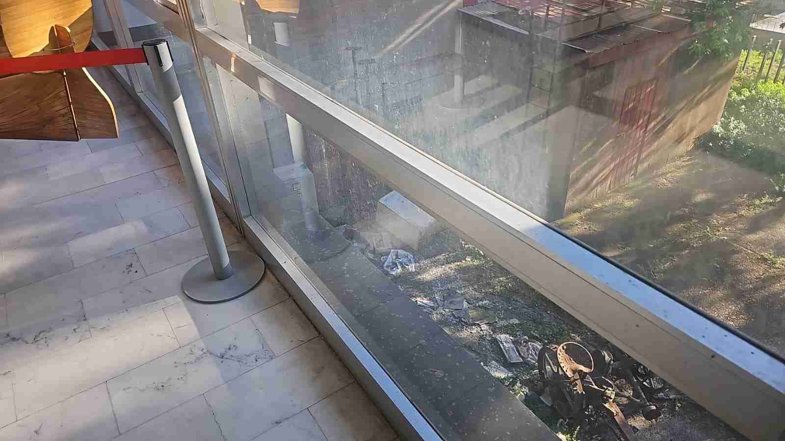 E non è tutto, perché guardando fuori da una delle vetrate che dà sul giardino, abbiamo trovato una sorta di discarica: ci sono la case di un vecchio computer, album, fogli, trofei, apparecchi elettronici e altro ancora.