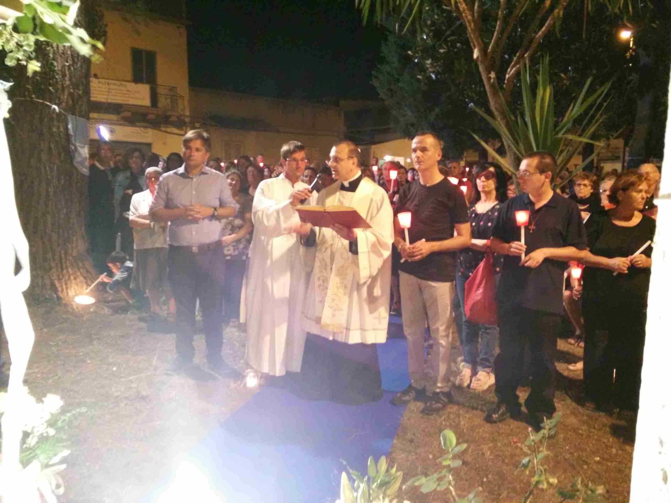 Dopo la messa delle 21, fedeli e cittadini hanno acceso le fiaccole e sono andati in processione fino al parco delle rimembranze dove è stata scoperta la nuova statua, offerta dalla famiglia Altomonte in ricordo di Agata, la ragazza di Gioia Tauro che qualche mese fa ha perso la vita per un grave malore dopo il parto. Alla cerimonia era presente anche il sindaco Giuseppe Pedà.