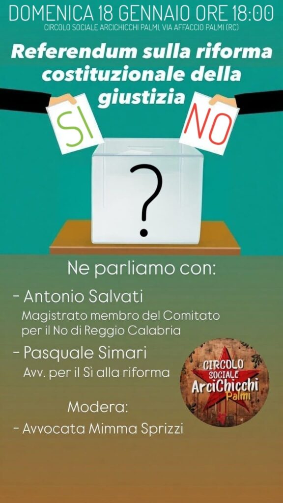 Riforma costituzionale della giustizia: è importante parlarne. Confronto pubblico al circolo ARCI di Palmi