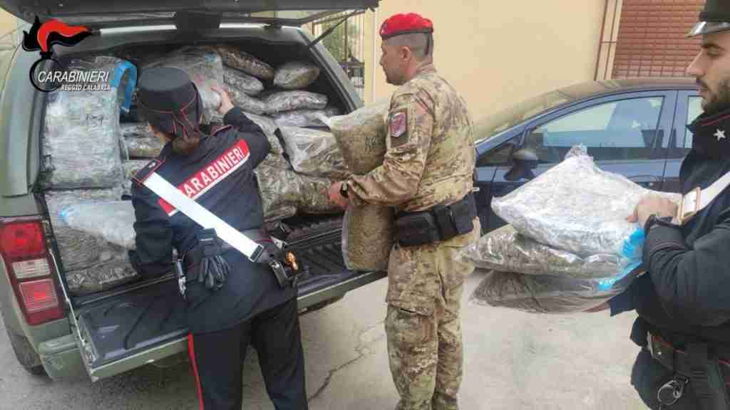 In particolare i militari, grazie al supporto di una squadra dei Carabinieri dello Squadrone Eliportato Cacciatori “Calabria”, hanno passato al setaccio alcune abitazioni e, nell’estendere la perquisizione all’interno di una di esse, hanno trovato numerosissimi sacchi contenenti marijuana, per un peso complessivo che supera i 188 kg.