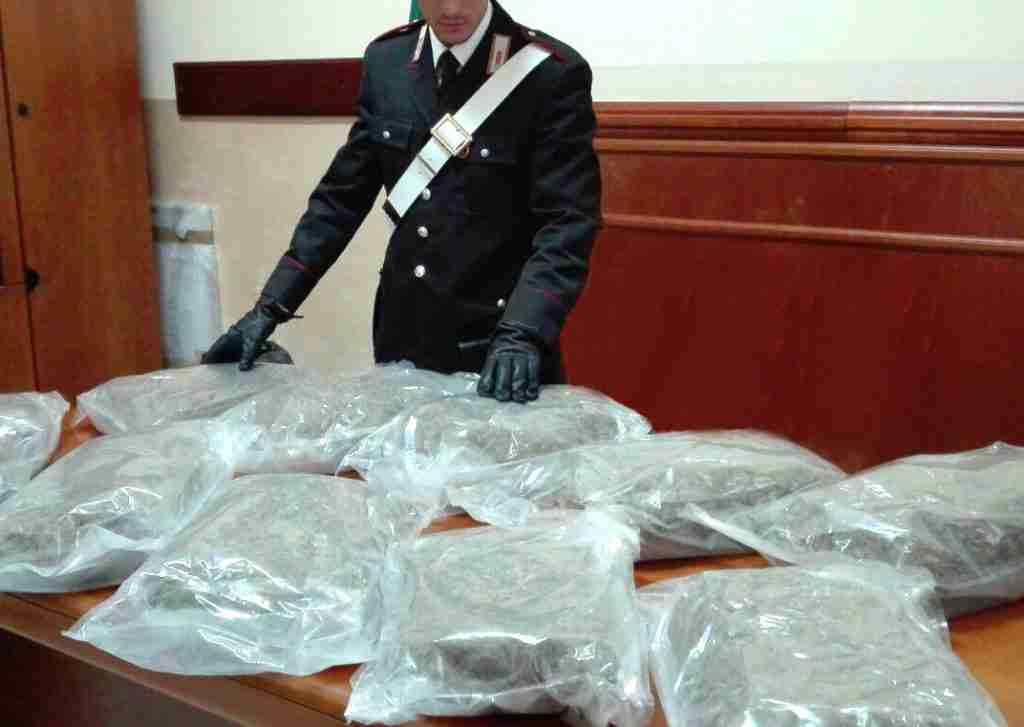 Nel bagagliaio, all’interno di un sacco, c’erano alcuni sacchetti di plastica con la marijuana, per un peso complessivo superiore agli 11 chili.