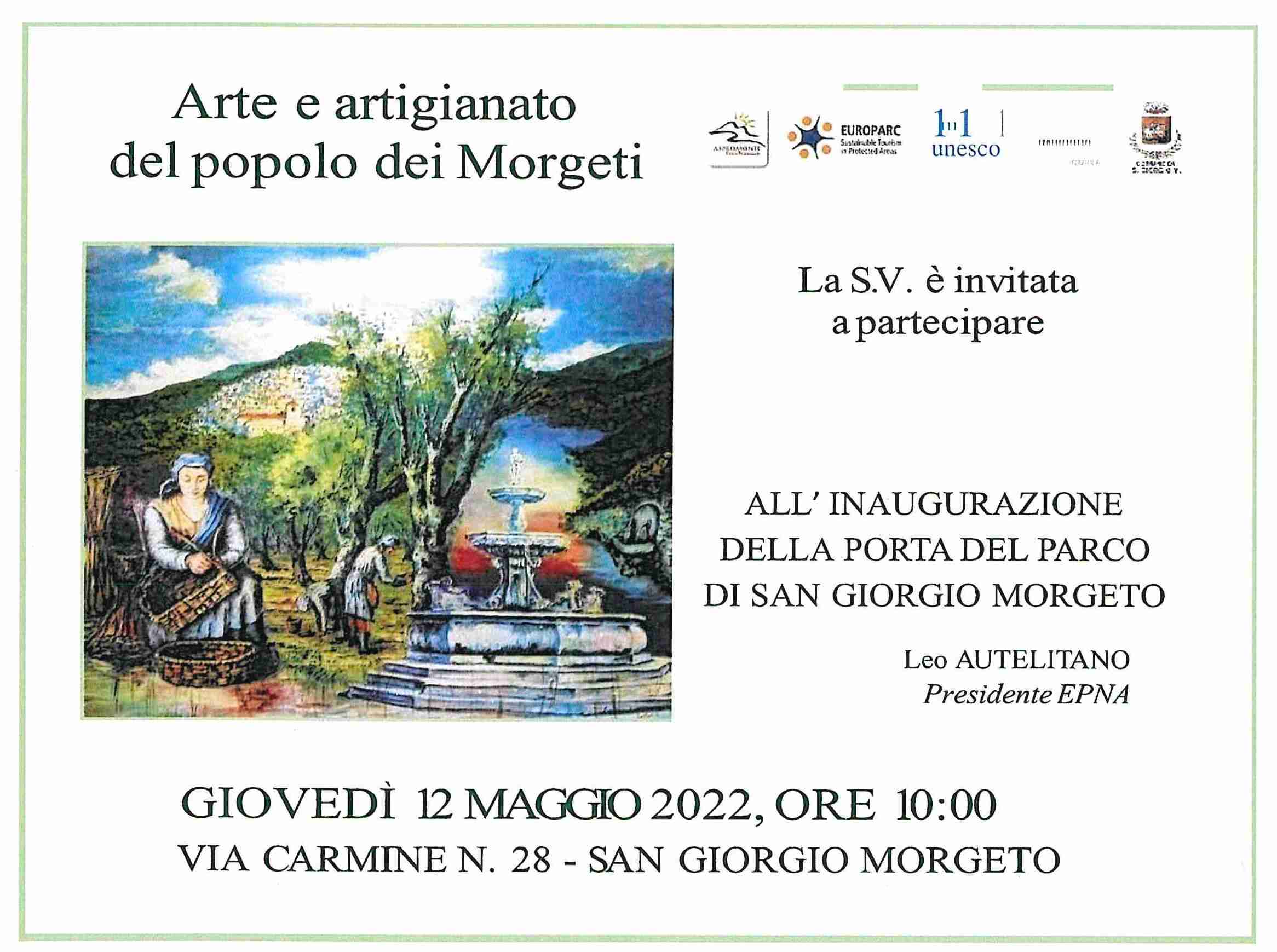 Arte e artigianato del popolo dei Morgeti. Giovedì 12 maggio alle ore 10 si terrà l’inaugurazione della Porta del Parco di San Giorgio Morgeto, in via Carmine 28.