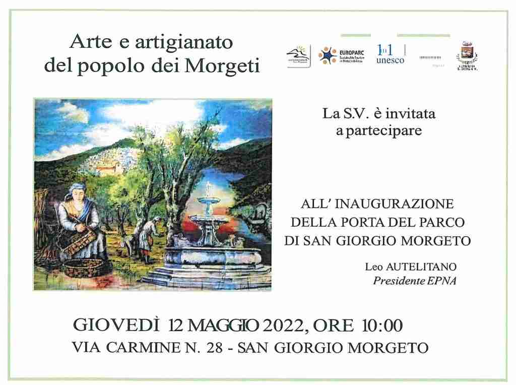 Arte e artigianato del popolo dei Morgeti. Giovedì 12 maggio alle ore 10 si terrà l’inaugurazione della Porta del Parco di San Giorgio Morgeto, in via Carmine 28.
