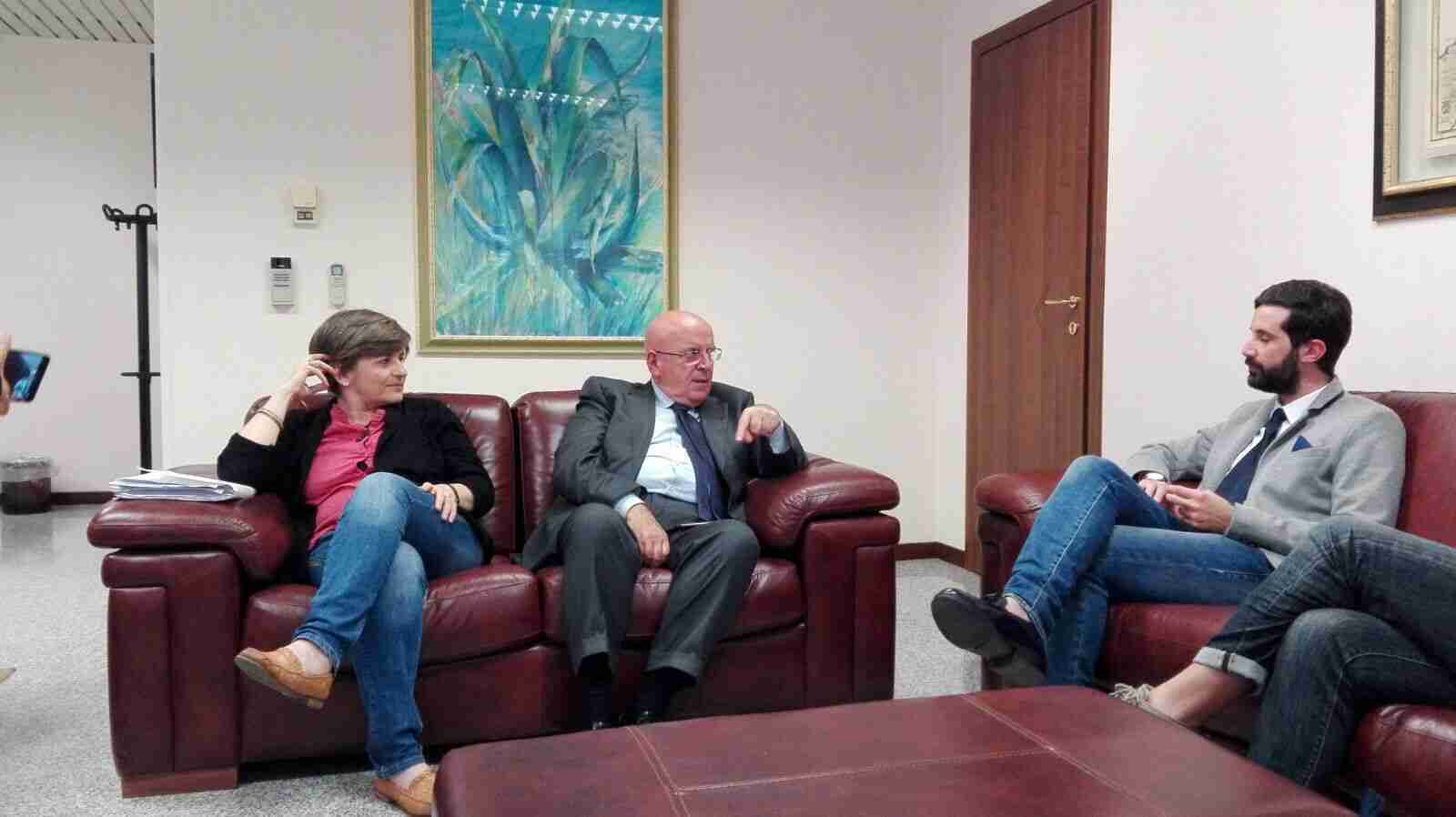 Questa mattina a Palazzo Campanella a Reggio Calabria si è tenuto l’incontro tra il Presidente della Regione Calabria Mario Oliverio e il sindaco di Palmi Giuseppe Ranuccio, accompagnato dalla vicesindaco Sina Bruno e dall’assessore Consuelo Nava, per discutere sulle questioni della sanità e in particolare sullo stato della progettazione del nuovo Ospedale della Piana a Palmi.