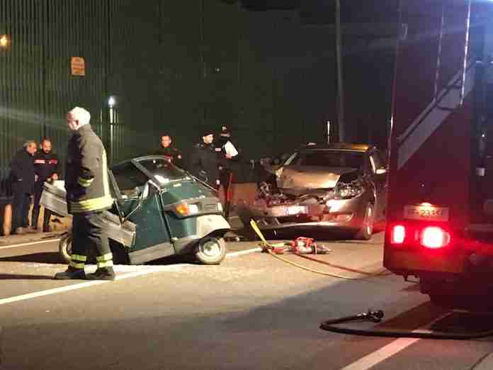 Intorno alle 18.30 una Fiat Bravo ha impattato violentemente contro una moto ape Piaggio.