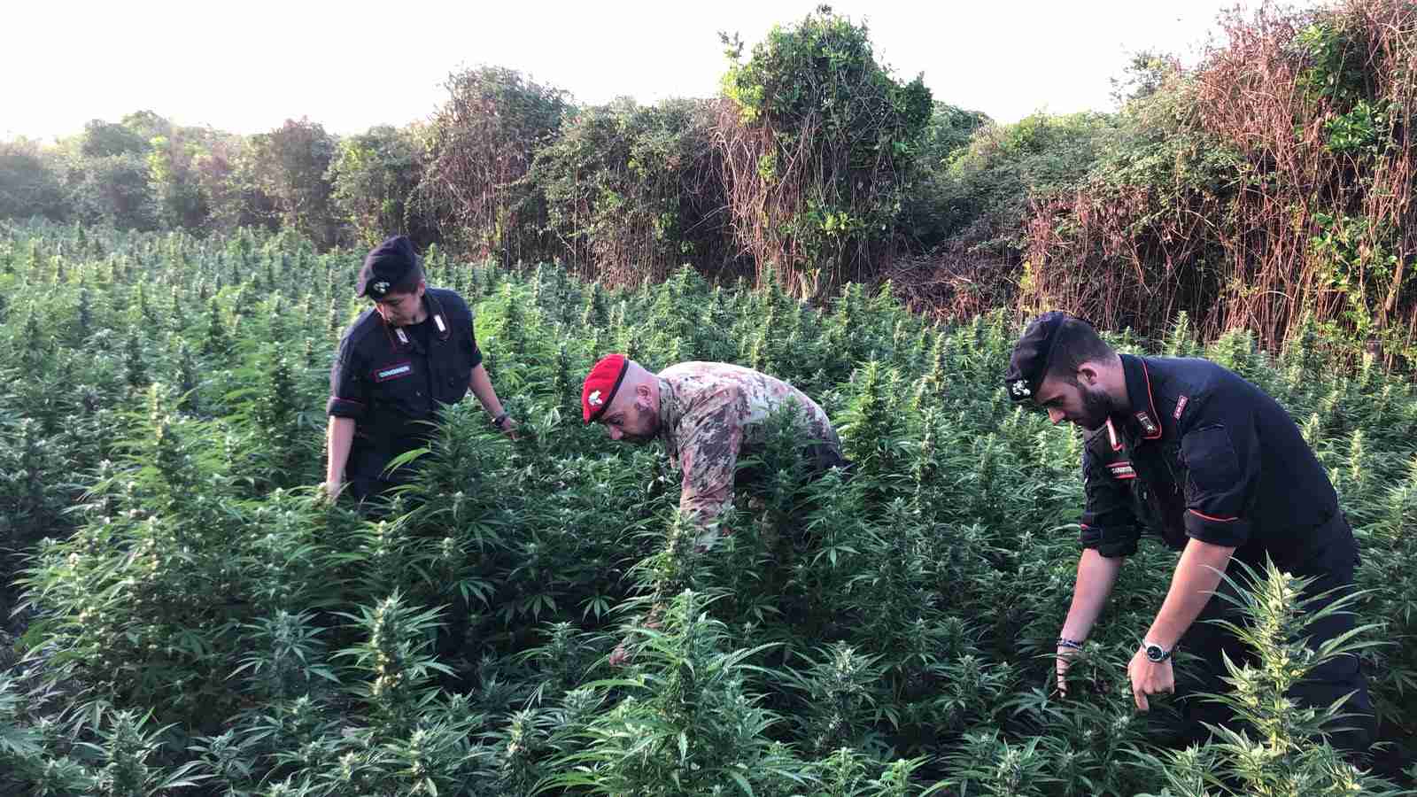 Il sopralluogo ha consentito ai militari di appurare la presenza, in un terreno di 1 chilometro quadrato, di una vasta piantagione di circa 1.500 piante di marijuana del tipo “olandese nana”, dell’altezza media di 1 metro circa, in pieno stato vegetativo. Il campo in esame era ben nascosto da un folto muro naturale composto da alte canne e rovi, accessibile attraverso un unico e stretto cunicolo ricavato tra la fitta vegetazione e protetto da un sistema di video-sorveglianza ricaricato con energia solare, in grado di registrare e mandare segnali di allarme in caso di movimenti sospetti da parte delle Forze dell’Ordine.