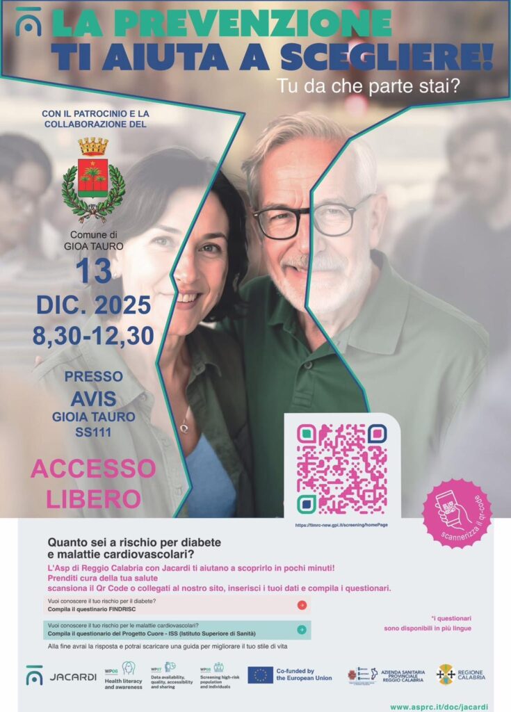 Un sentito ringraziamento va ai dirigenti dell’Asp di Reggio Calabria, impegnati nel progetto europeo Jacardi, che stanno offrendo un supporto prezioso e costante per la realizzazione di queste attività rivolte alla prevenzione del diabete e del rischio cardiovascolare.