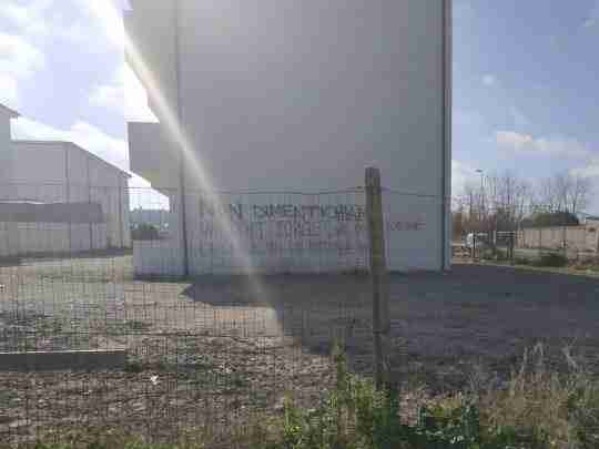 sui muri esterni del complesso di palazzine realizzate con fondi dell’Ue e destinate ad ospitare i migranti in contrada Serricella a Rosarno.
