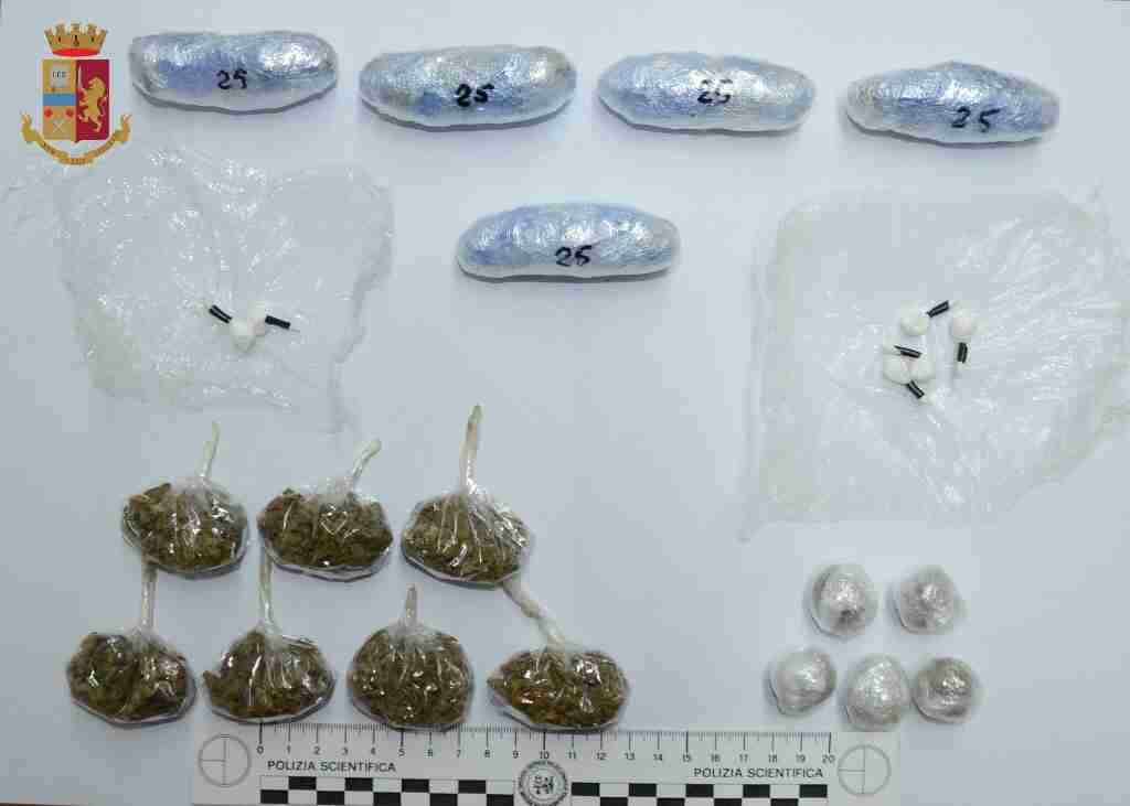 Gli involucri contenevano cocaina e canapa indiana, il cui peso totale era di 38,49 grammi.