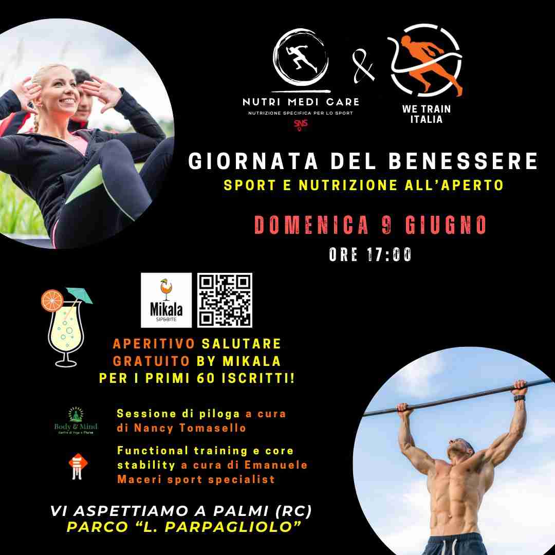 Con questo messaggio il centro di nutrizione Nutri Medi Care di Palmi e We Train invitano a partecipare alla “Giornata del benessere”, iniziativa che si svolgerà domenica 9 giugno al Parco Parpagliolo a partire dalle 17.