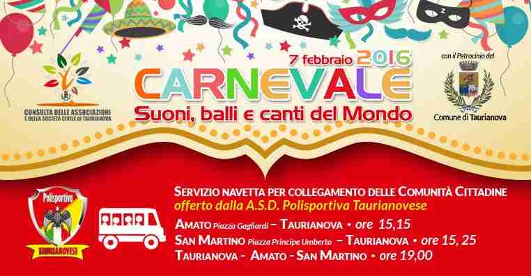 Gli eventi – tutti il prossimo 7 Febbraio – vedranno, la mattina, manifestazioni riservate ai bambini e nel pomeriggio sfilate allegoriche per le vie del paese, musiche e degustazioni di dolci tipici. Per favorire gli spostamenti dei giovani delle comunità di San Martino e Amato è stato realizzato anche un servizio navetta con un pullman gran turismo messo a disposizione dalla dirigenza della Asd Polisportiva Taurianovese.