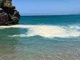 Da diversi giorni le acque del mare sono sporche, galleggia di tutto: schiuma, buste in plastica, escrementi, tranci di pizza, pane. Una fogna nella quale è impossibile e rischioso fare il bagno.