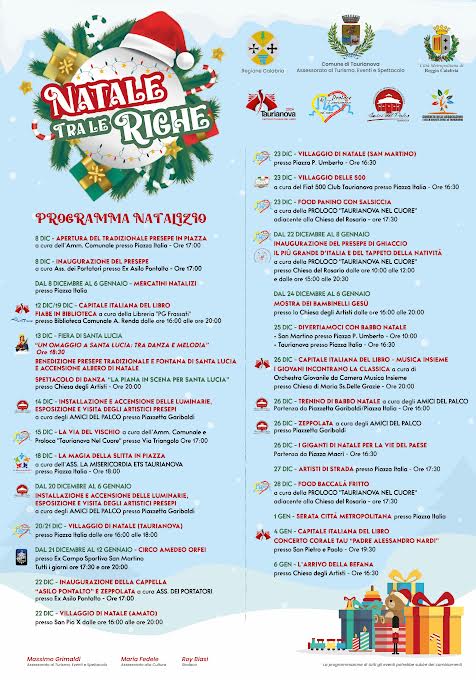 Un cartellone che, nell’anno di Taurianova Capitale del Libro 2024, si muove in diversi appuntamenti direttamente con l’impulso verso la promozione della cultura che deriva dal ruolo nazionale, che diventa ora ancora più conosciuto e apprezzato grazie alle attività attrattive che la città esprime nel clima natalizio.